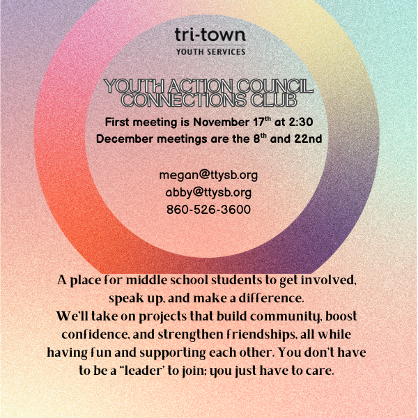 Tri-Town Youth Services Bureau, Inc. is a nonprofit organization based in Chester, Deep River, and Essex, Connecticut. We coordinate, develop, and deliver programs that support the positive growth of youth and families. Moreover, we work to build thriving communities through prevention, education, and outreach.